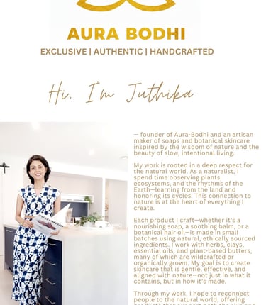At Aura Bodhi, we create small-batch soaps and skincare, honoring nature's wisdom and beauty through ethically sourced, natural ingredients for a mindful, intentional lifestyle.